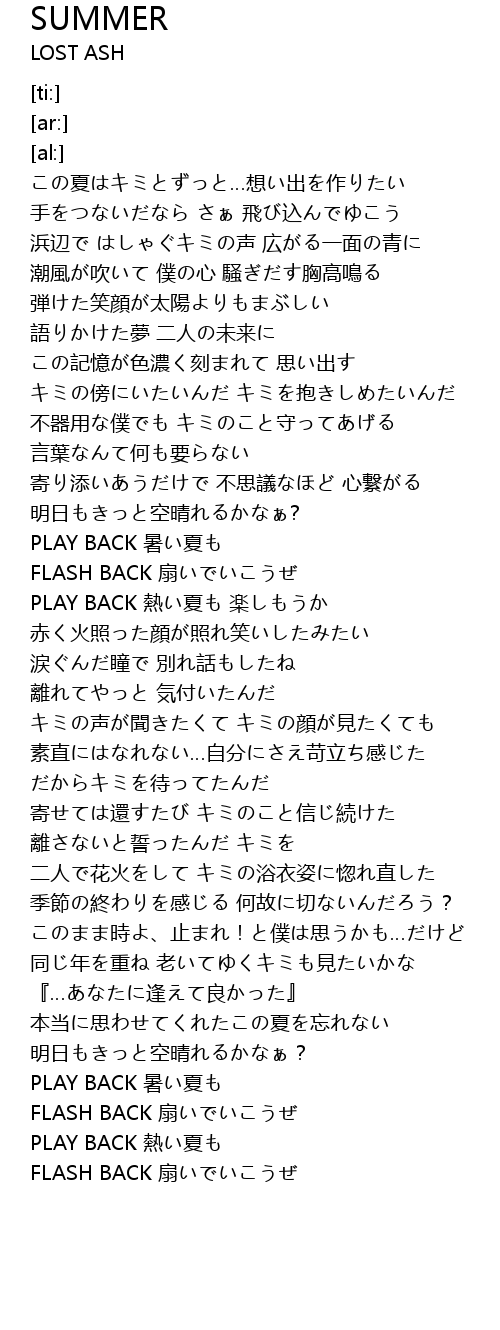 | [04:24.07] | PLAY BACK 熱い夏も |