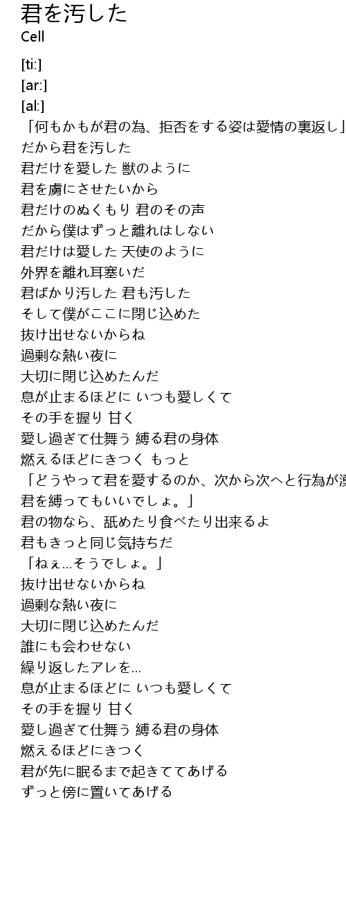 | [01:18.36] | 君ばかり汚した 君も汚した |