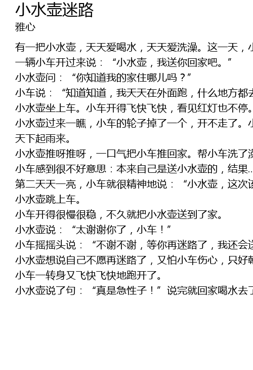 | 小水壶说了句:“真是急性子!”说完就回家喝水去了! |
