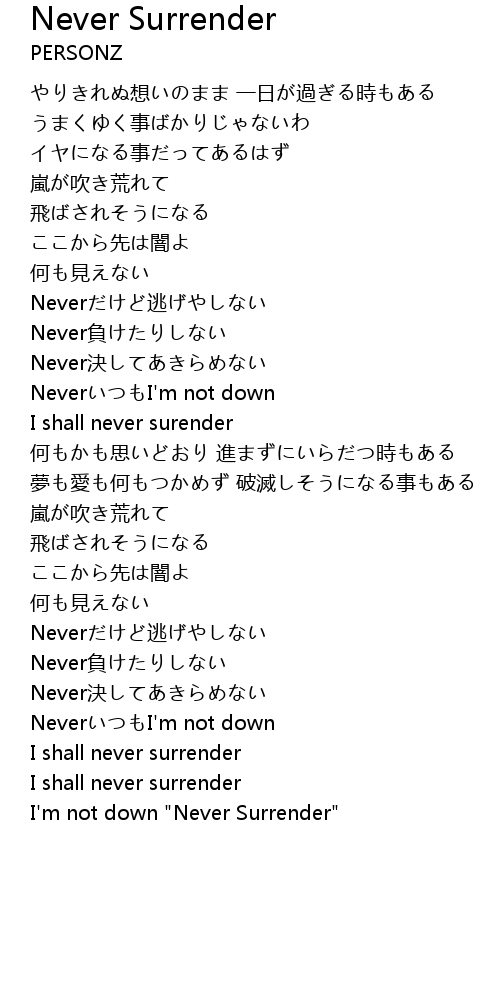 | I'm not down "Never Surrender" |