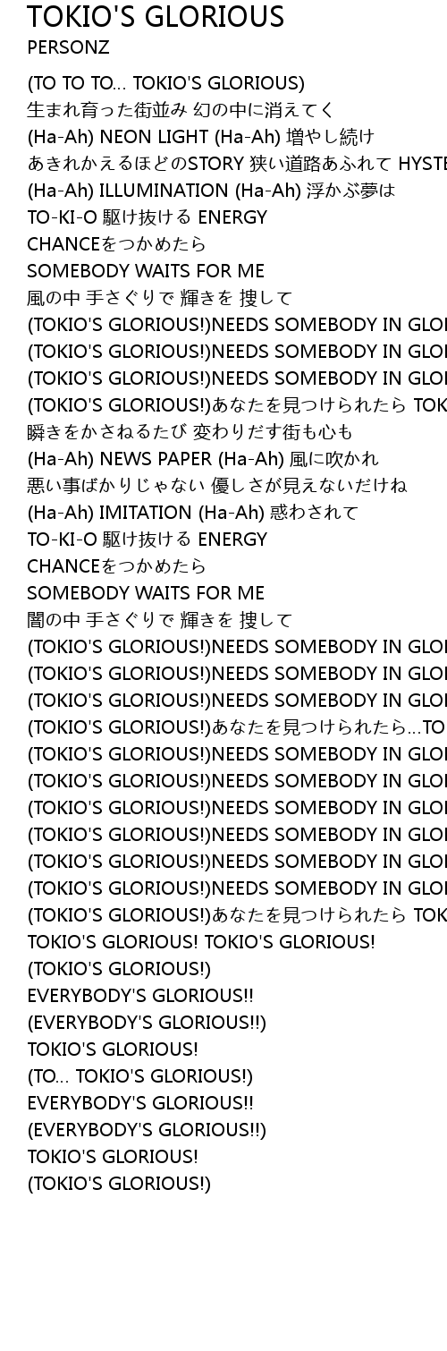 | TOKIO' S GLORIOUS! NEEDS SOMEBODY IN GLORIOUS LIFE! | |