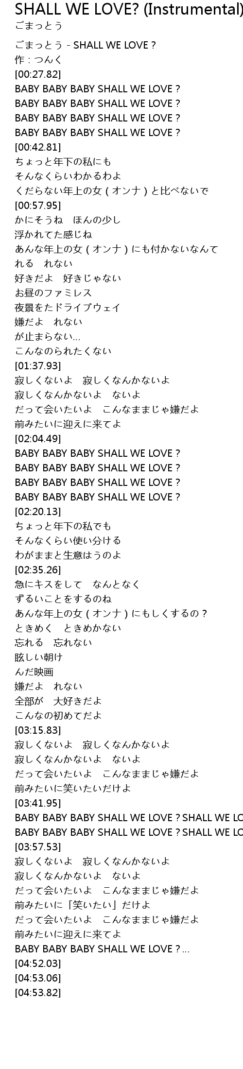 | [00:00.00] | ごまっとう - SHALL WE LOVE? |