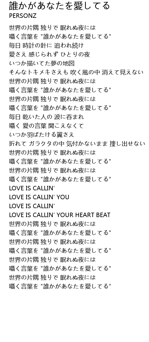 | 囁く言葉を "誰かがあなたを愛してる" |