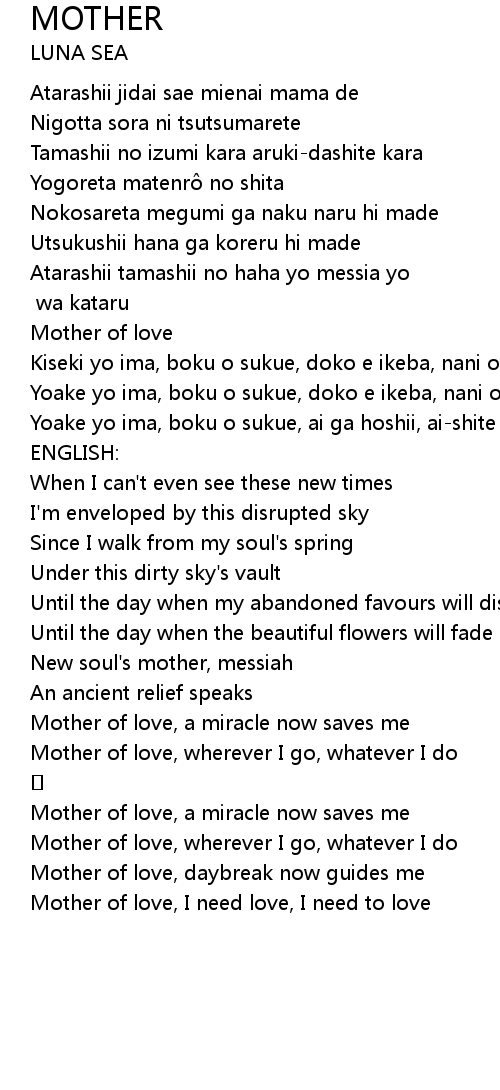 | Mother of love, I need love, I need to love |