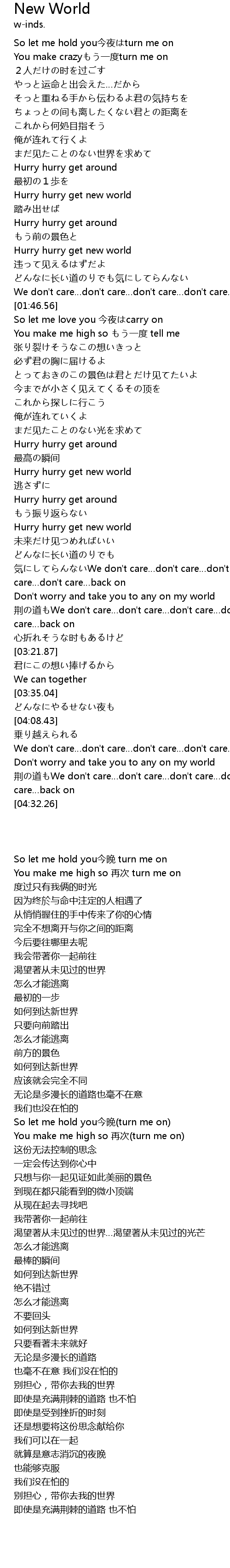 | [02:34.78] | Hurry hurry get new world |