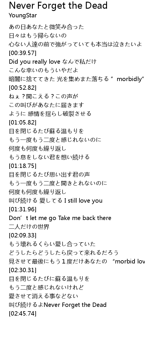 | [02:40.24] | 叫び続けるよNever Forget the Dead |