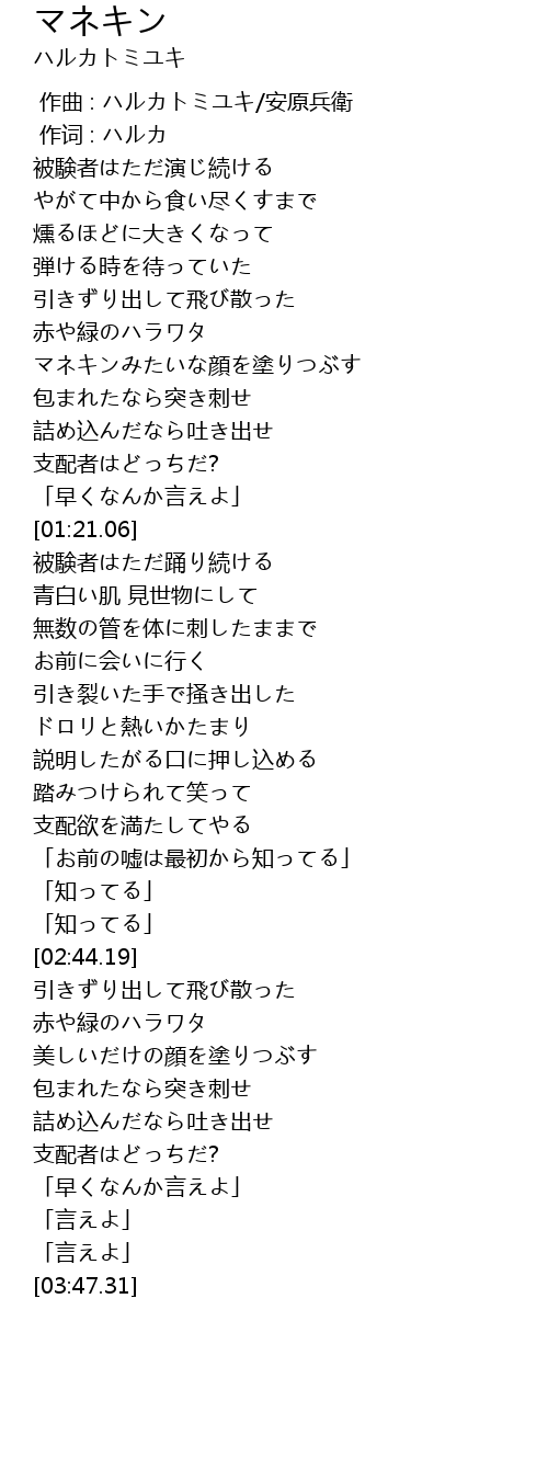 | [01:00.57] | マネキンみたいな顔を塗りつぶす |