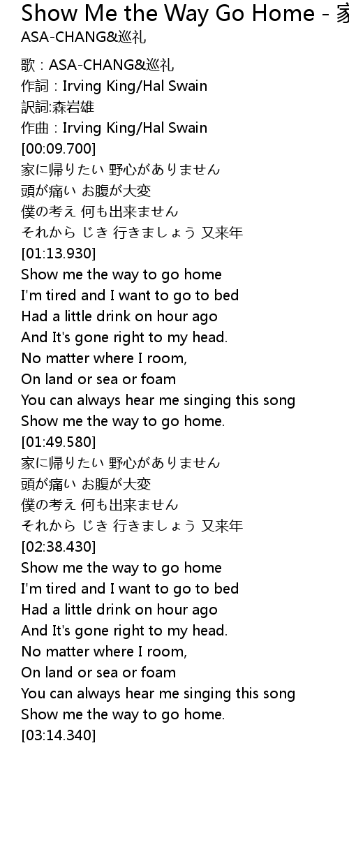 | Song | Show Me the Way Go Home - 家へかえりたい |