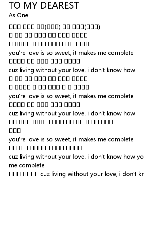 | cuz living without your love, i don' t know how you' re iove is so sweet, it makes me complete | |