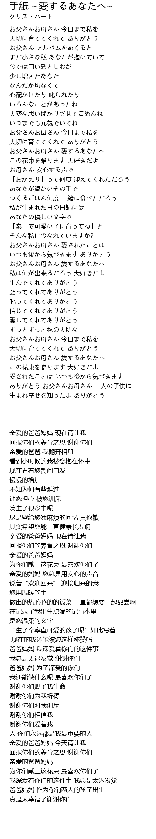 お父さんお母さん 愛するあなたへ |