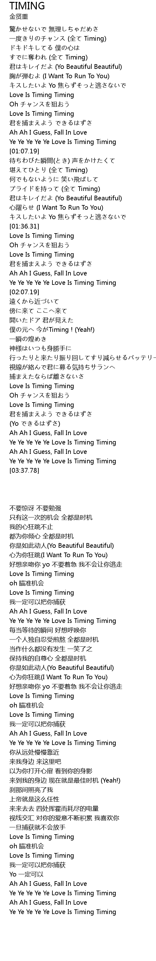 | [01:58.31] | Ye Ye Ye Ye Ye Love Is Timing Timing |