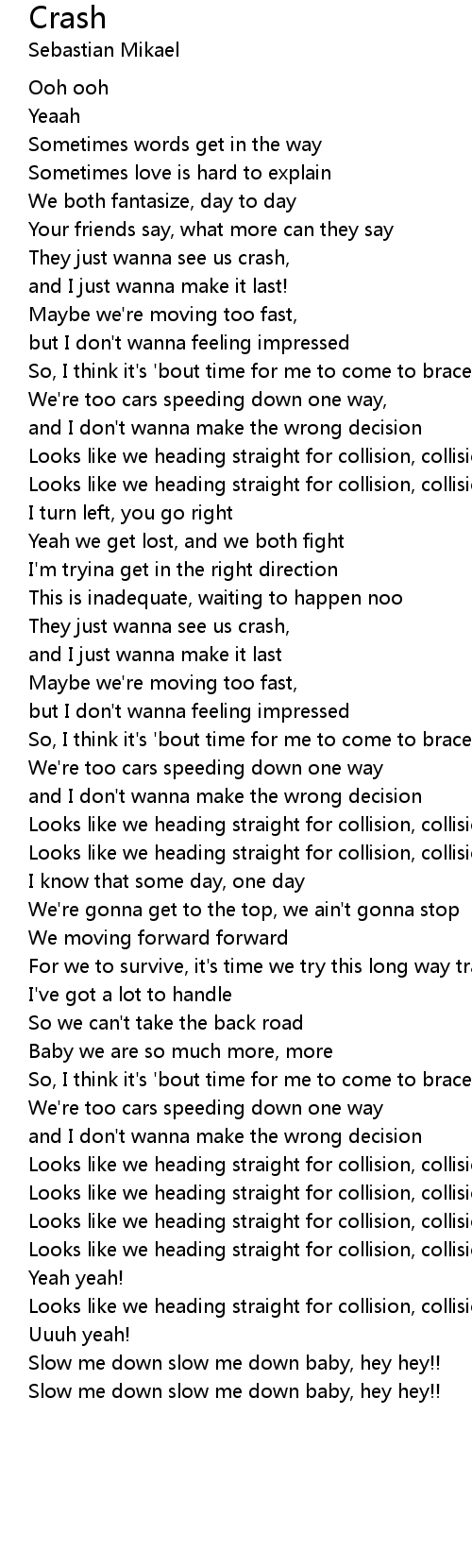 Looks like we heading straight for collision, collision |