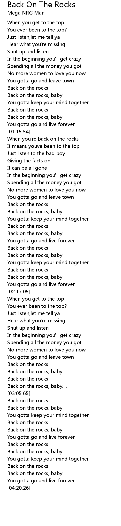 Back on the rocks, baby |