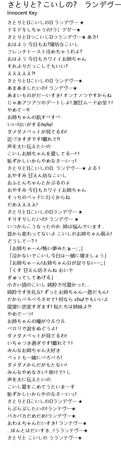 | [00:21.29] | さとりと♡つこいし♡つランデヴ一★ あさ! |