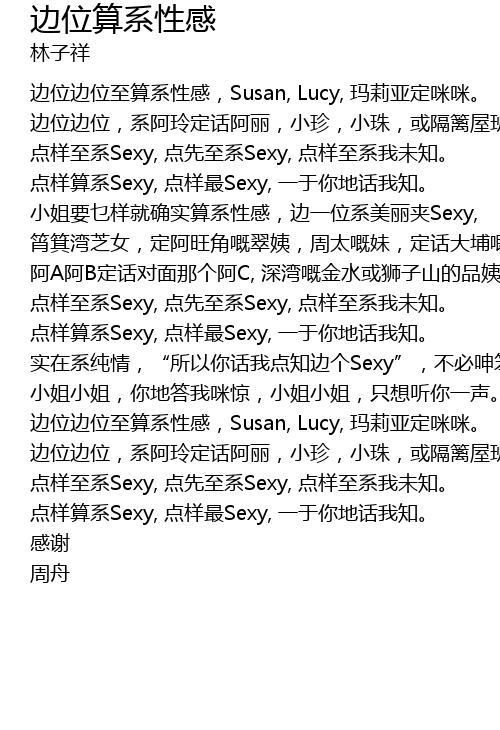 | diǎn yàng zhì xì Sexy, diǎn xiān zhì xì Sexy, diǎn yàng zhì xì wǒ wèi zhī. | |