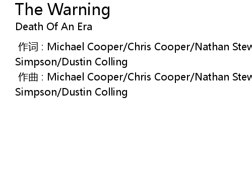 | [00:00.000] | 作词 : Michael Cooper/Chris Cooper/Nathan Stewart/Daniel Simpson/Dustin Colling |