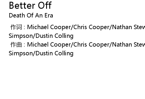 | [00:00.000] | zuò cí : Michael Cooper Chris Cooper Nathan Stewart Daniel Simpson Dustin Colling |