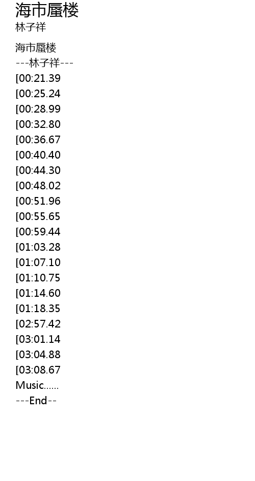 | [03:23.93][03:08.67][01:35.58] | qíng yuán xiàng hǎi shì shèn lóu |