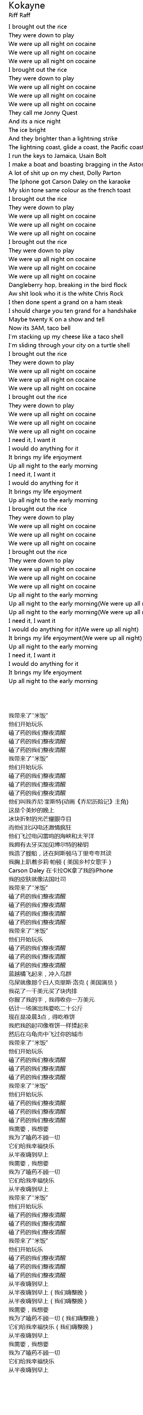 | [00:17.000] | We were up all night on cocaine |