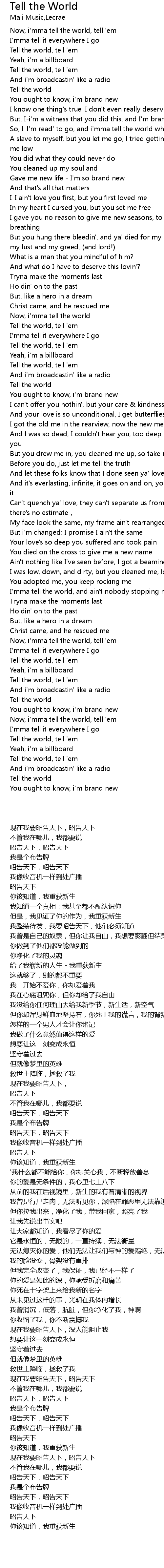 | [00:05.13] | Now, i'mma tell the world, tell 'em |