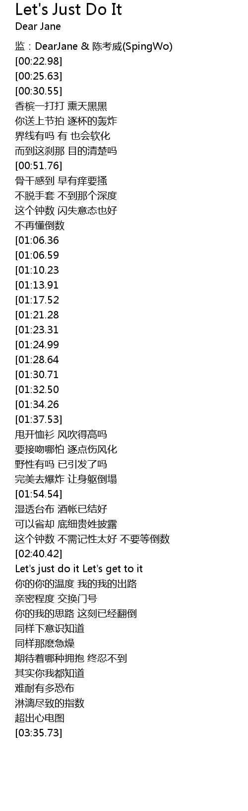 | [00:20.37] | jian: DearJane chen kao wei SpingWo |