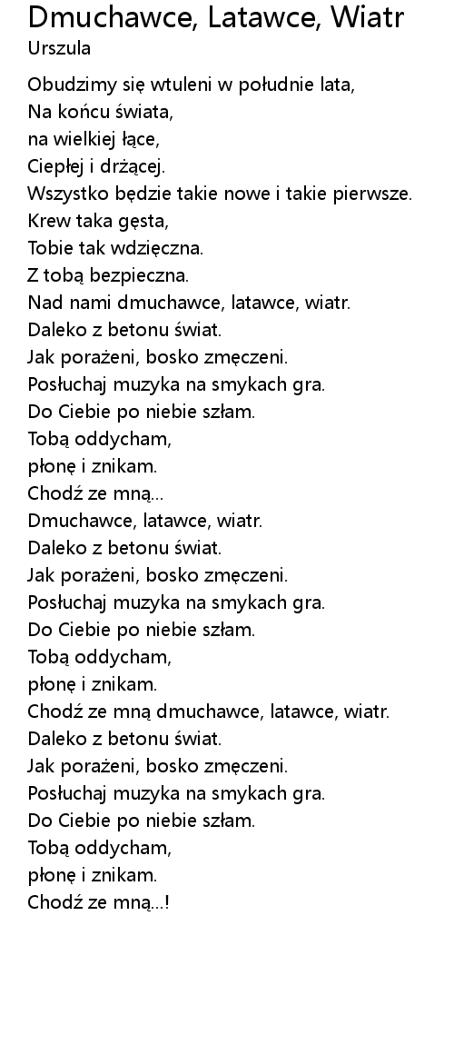 | [04:03.57] | Chod ze mn dmuchawce, latawce, wiatr. |