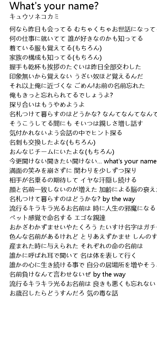 | 今更聞けない聞きたい聞けない... what's your name?!!?!? | |