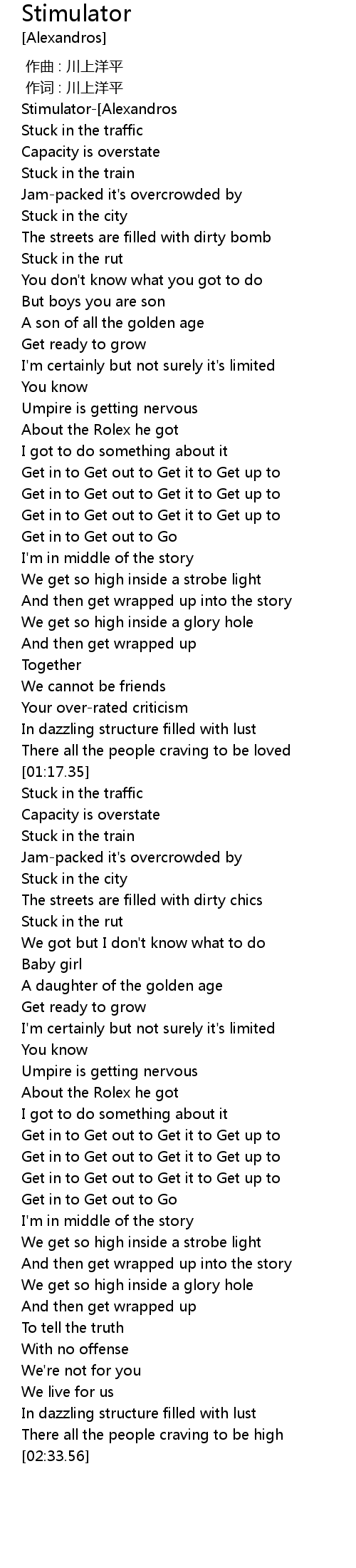 | [00:01.93]Stimulator-[Alexandros] | |