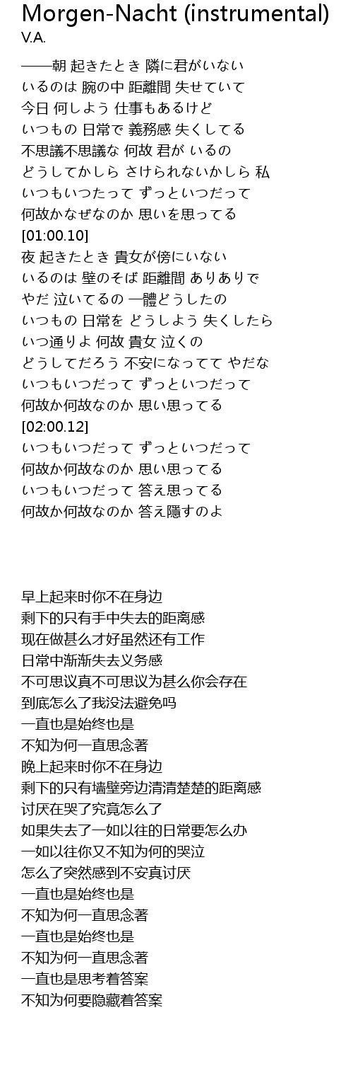 | [01:12.99] | 夜 起きたとき 貴女が傍にいない |