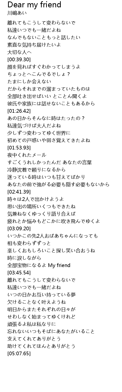 | [03:36.57] | 全部宝物になるよ My friend |