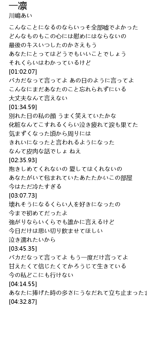 | [03:45.75] | バカだなって言ってよ もう一度だけ言ってよ |