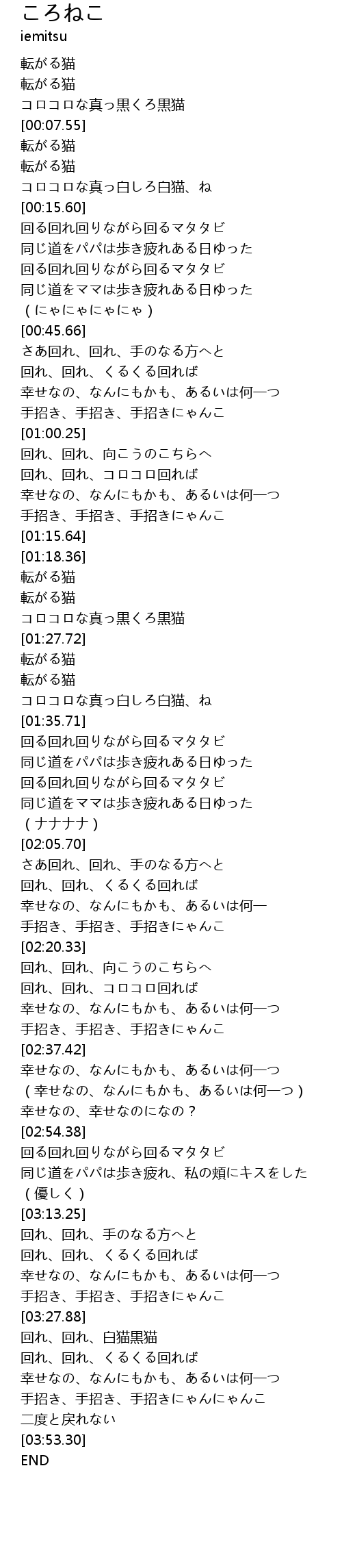| [03:38.83] | 手招き、手招き、手招きにゃんにゃんこ |