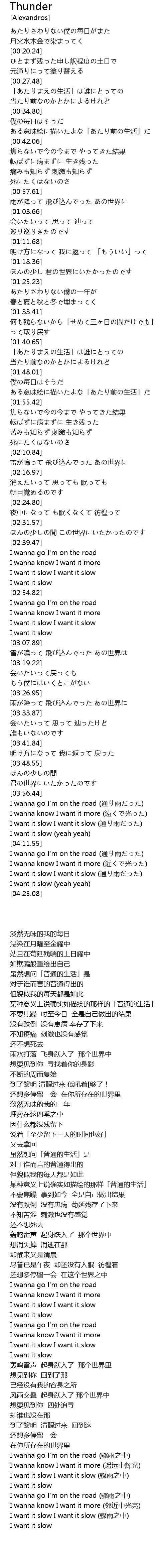 | [04:19.65] | I want it slow I want it slow (通り雨だった) |