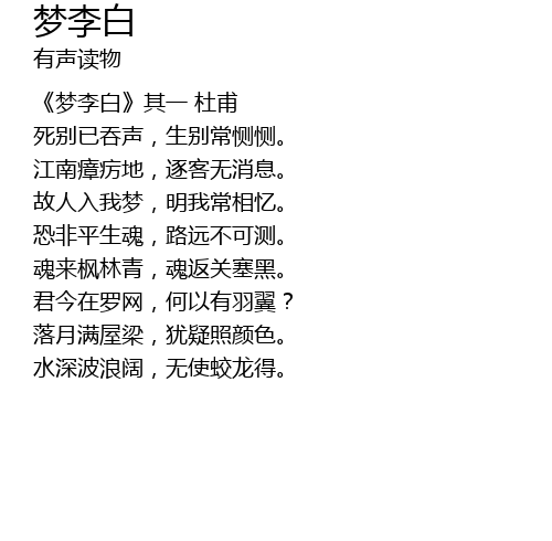 | [00:00.000] | 《梦李白》其一 杜甫 |
