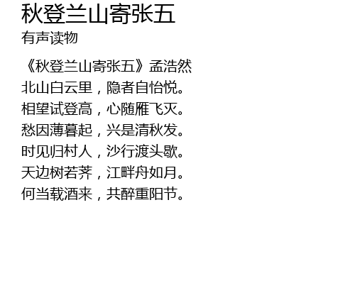 | [00:00.000] | 《秋登兰山寄张五》孟浩然 |