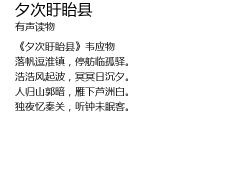 | [00:00.000] | 《夕次盱眙县》韦应物 |