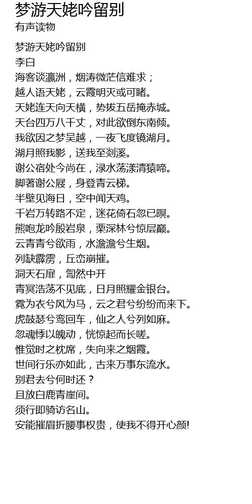 | [00:15.39] | 越人语天姥,云霞明灭或可睹。 |