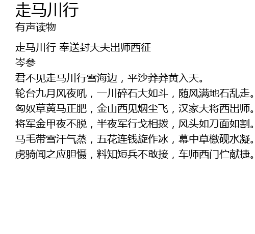 | [00:01.66] | 走马川行 奉送封大夫出师西征 |