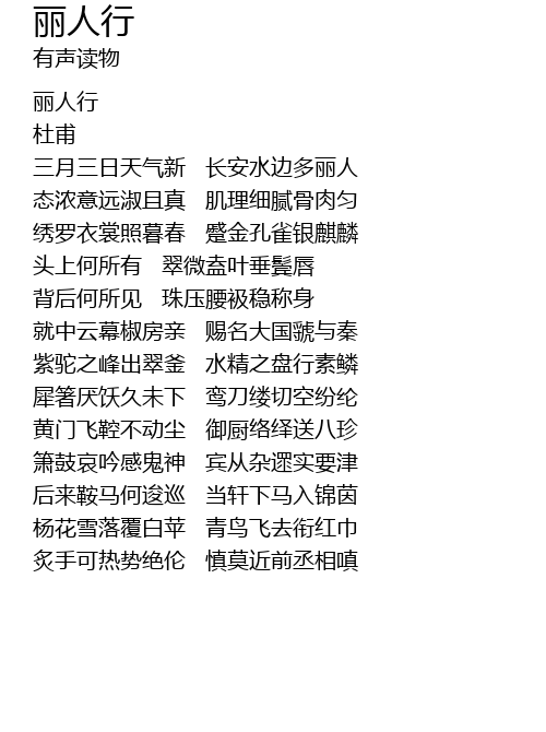 | [00:05.82] | 三月三日天气新 长安水边多丽人 |