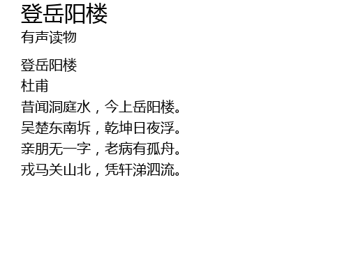 | [00:04.95] | 昔闻洞庭水,今上岳阳楼。 |