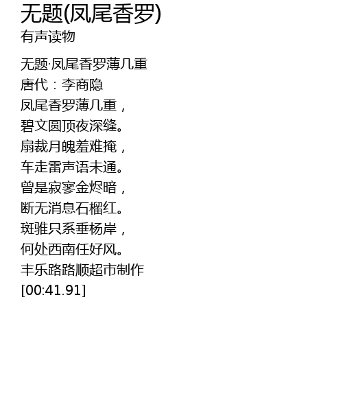 | [00:00.86] | 无题·凤尾香罗薄几重 |