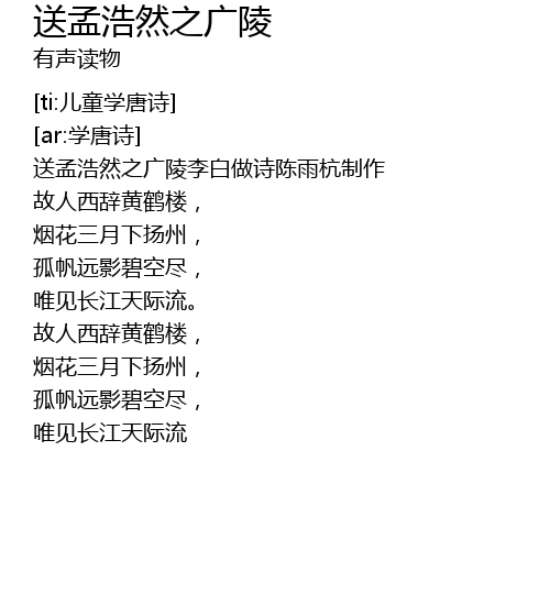 | [00:03.689] | song meng hao ran zhi guang ling li bai zuo shi chen yu hang zhi zuo |