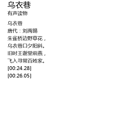 | [00:10.21] | 乌衣巷口夕阳斜。 |