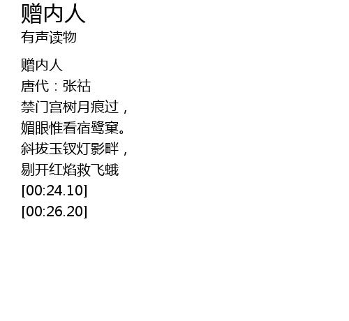 | [00:03.18] | 唐代:张祜 |
