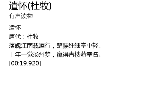 | [00:15.280] | 十年一觉扬州梦,赢得青楼薄幸名。 |