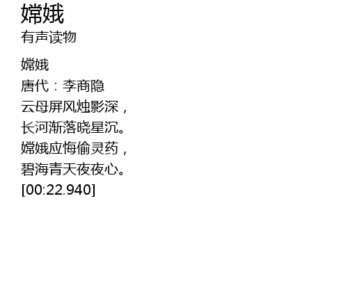 | [00:15.340] | 嫦娥应悔偷灵药, |