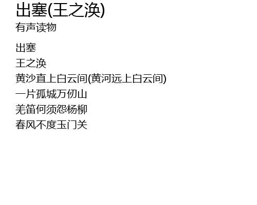 | [00:06.00] | 黄沙直上白云间(黄河远上白云间) |