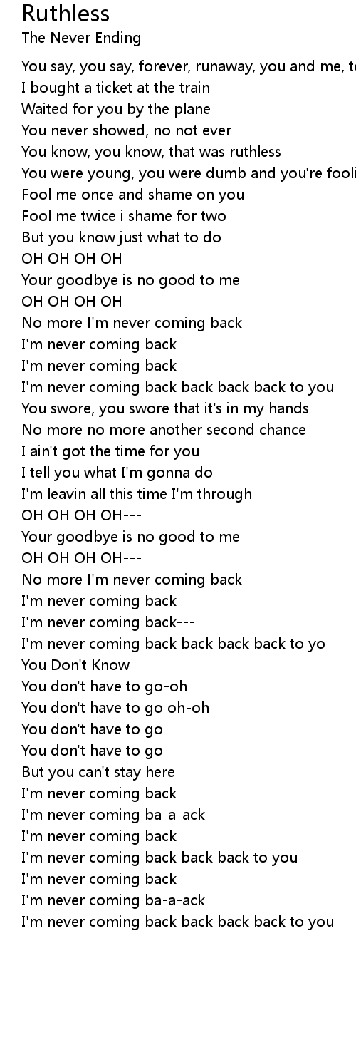 I'm never coming back back back back to you |