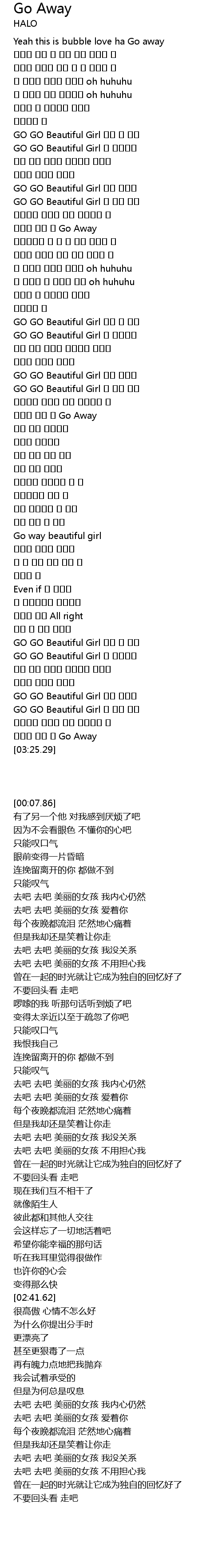 | [02:41.62] | Go way beautiful girl |