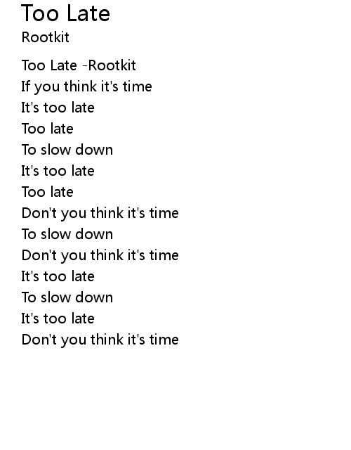 | [00:00.00] | Too Late -Rootkit |